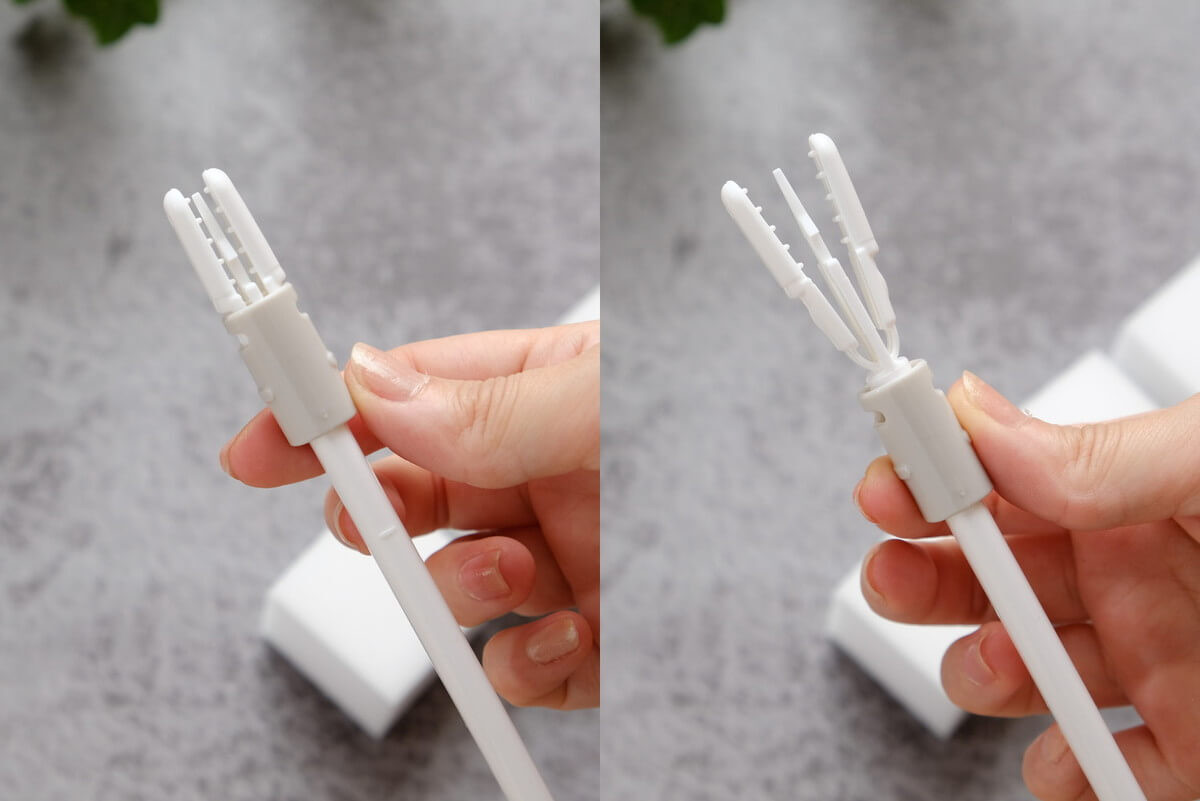 メラミンスポンジを刺してから留め具を戻すと、スポンジが挟まれてがっつり固定されます!