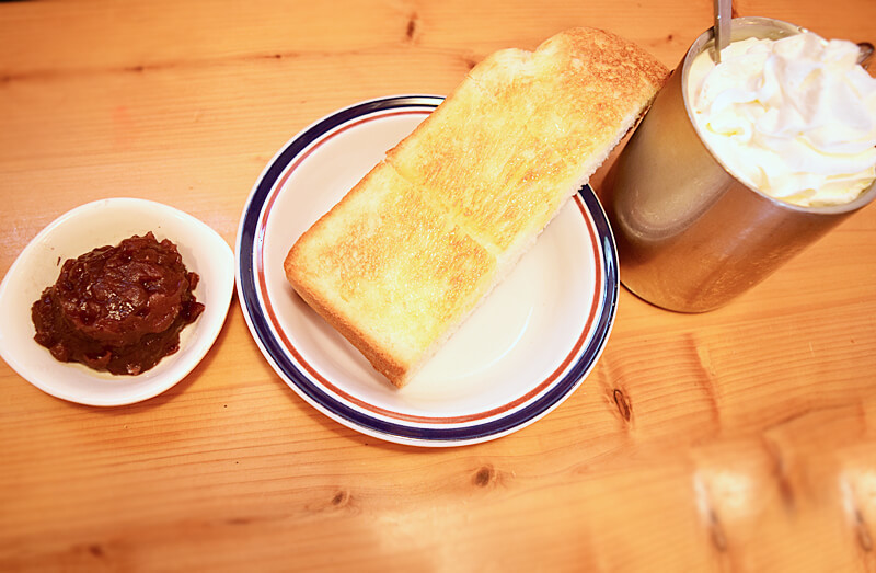 トーストにおぐらあん、アイスウインナーコーヒーのホイップクリームをのせて、小倉ホイップトーストにするのもおすすめ。