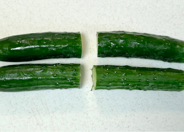 きゅうりはよく洗って水気を切ったら、端を切り落とします。