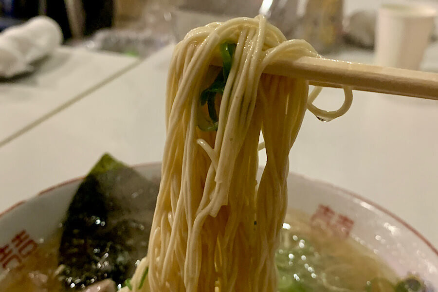 店先で待っているときは、とんこつの匂いが結構しましたが、食べると旨味しかありません。麺は極細で固めのストレート麺。