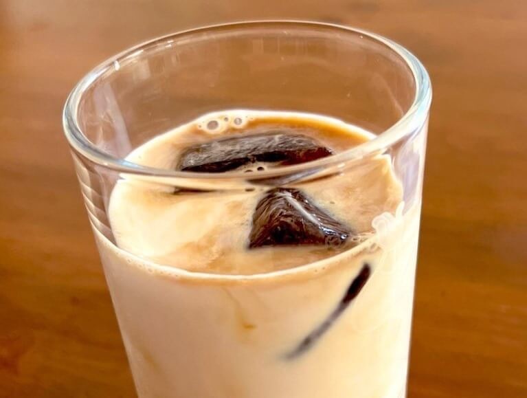 溶け出したコーヒー氷によって、薄くなるどころか、むしろだんだんと「濃くなるカフェオレ」の完成です。