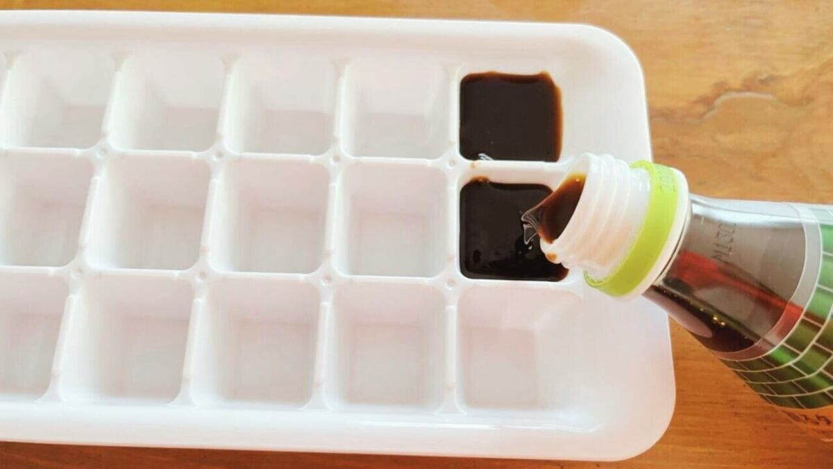 カフェオレベースを製氷皿に注ぎ入れます。