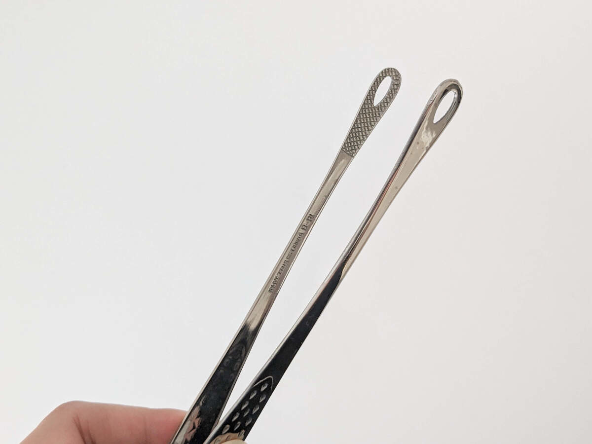 さらに先端の内側をよく見ると、このようにギザギザ加工が施されているんです。そのため力を入れなくてもしっかりと食材を掴めます。