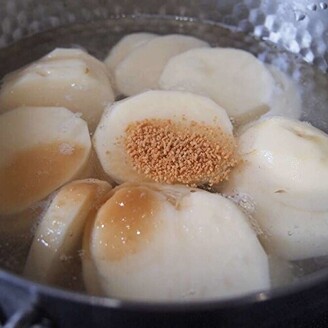 熱いうちに白だしを加えて混ぜて、粗熱をとります。