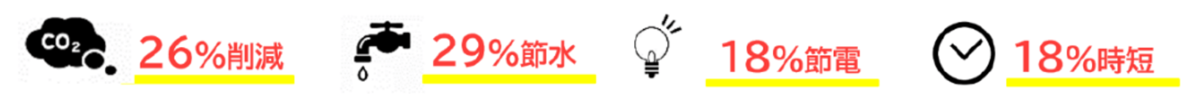 ※水・電力・ CO₂は、国内洗濯機メーカー主要4社の縦型代表機種 衣類3kg標準コース洗濯時平均をもとに算出
