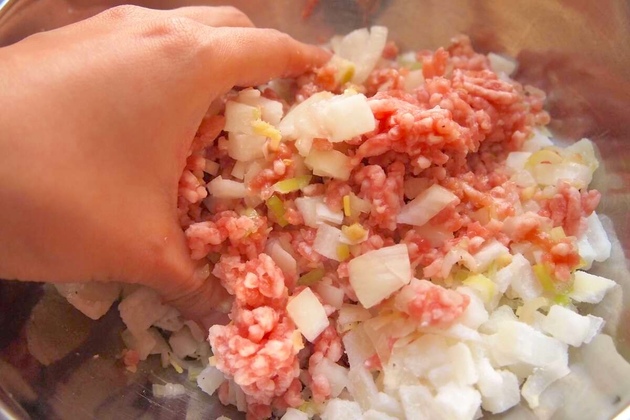 ここでしっかり混ぜすぎると、たまねぎの水分が出てきてしまうので、混ぜすぎ注意です!