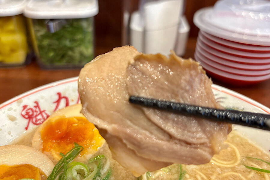 チャーシューも歯ごたえが少し残っているタイプで美味しいです。