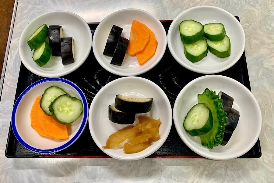 最初に漬物を6種類の中から選ばせてくれます。自分の苦手な食材もあるので選べるのは嬉しいサービスです。