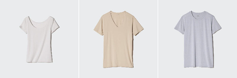 M エアリズム V ネック T半袖、M エアリズムクルーネック T 半袖、W エアリズムキャミソール、W エアリズムタンクトップ、W エアリズムU ネックT半袖を、この機会に試してみては。