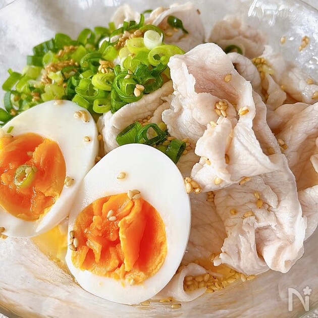 豚肉や茹で卵をトッピングすれば、ボリュームもしっかり出て満足感がアップします。青ネギなどの香味野菜を添えることで、風味も豊かになりますよ。