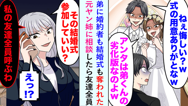 【悲劇】弟に婚約者も結婚式も奪われた(泣)→元ヤン姉に相談したら「私の友達全員呼ぶわ」その結果…