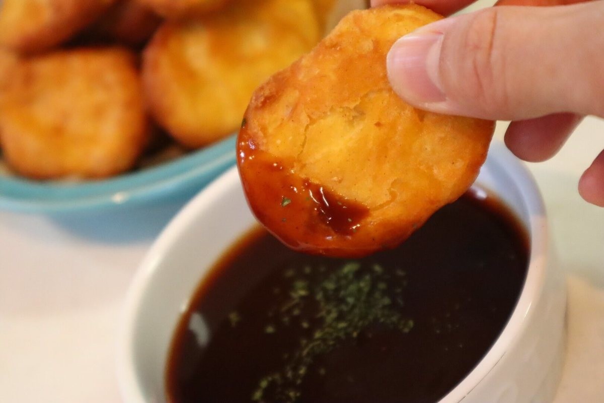 また、公式レシピの分量が分かりにくかったので、分かりやすく大さじにしました。今回のソースの量でナゲット20個ほど食べられます!