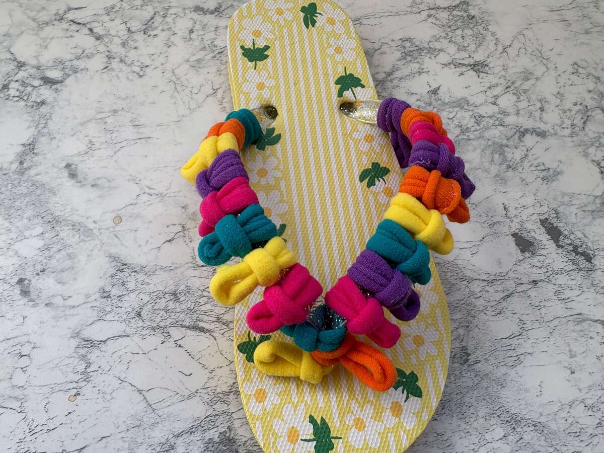 この夏、ダイソーのビーチサンダルを自分好みのヘアゴムの配色で編んでみてはいかがでしょうか?
