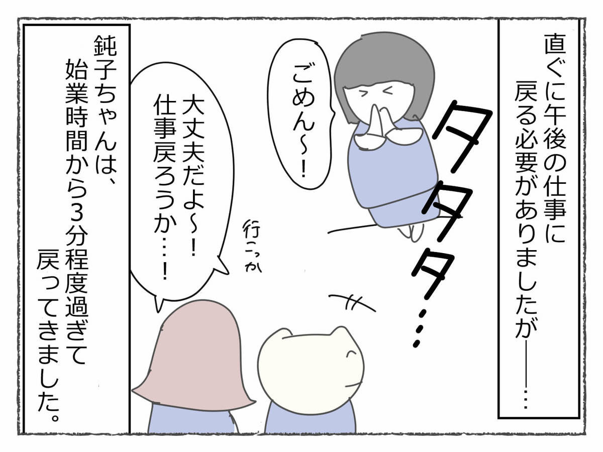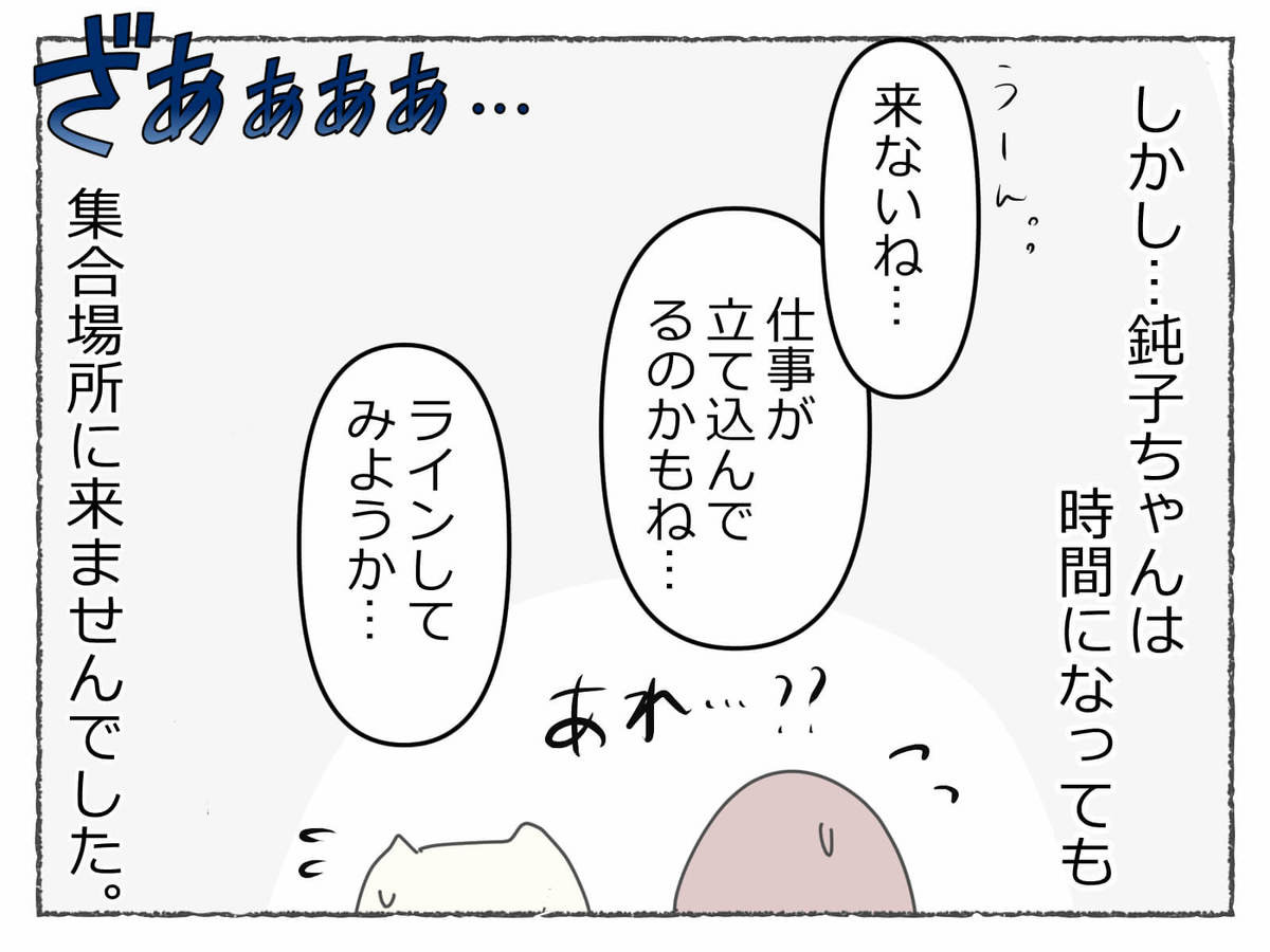 あ~~~これはブチギレ案件(怒)!仕事だから仕方ないと思いますが、鈍子ちゃんはこれで2回目なのでね……。しかもあまり仲良くない関係だと言うにも言えなくて、結局待ってしまうんです……。そして疲弊してしまうんです……。よ~く分かります……。