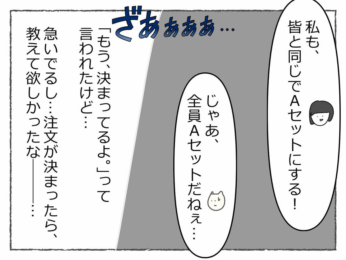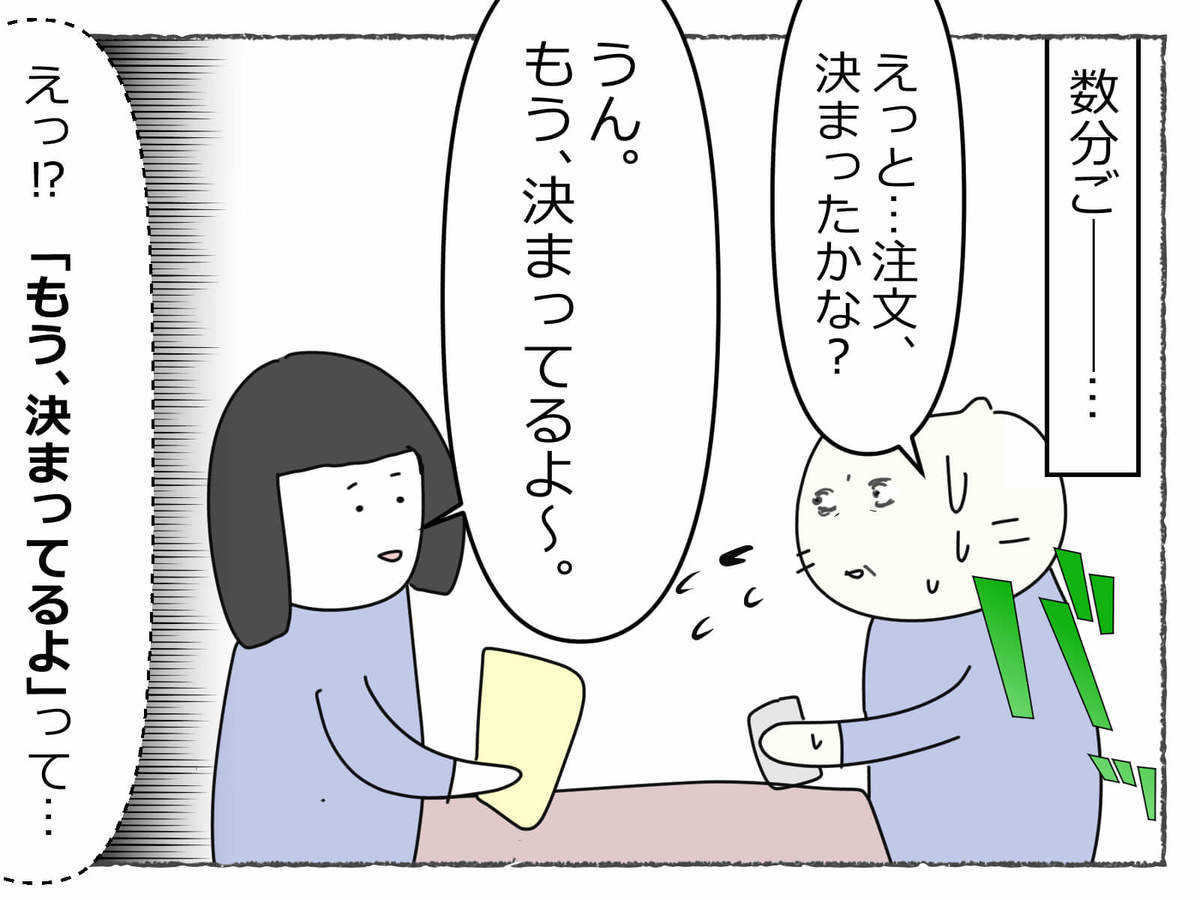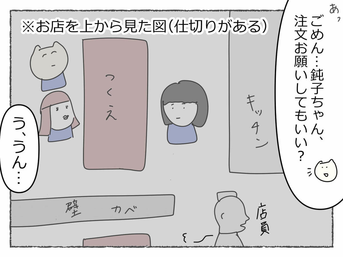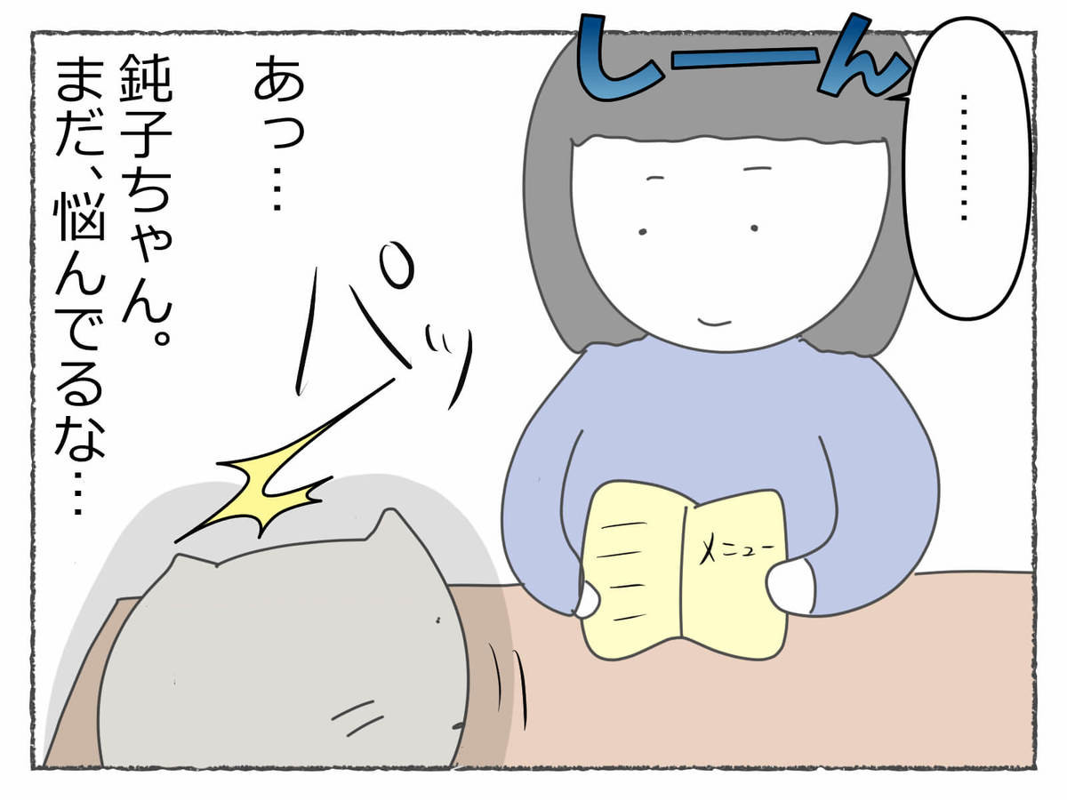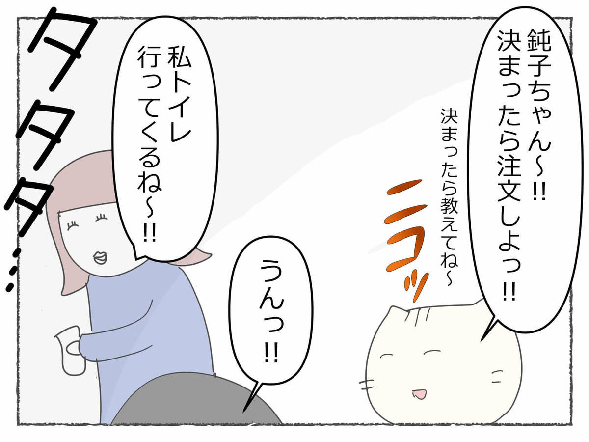店員さんを呼べないのは百歩譲ったとして、なぜネコ丸さんにメニューが決まったか言えないんでしょう。何でもやってくれる優しさに甘えているんでしょうか……?