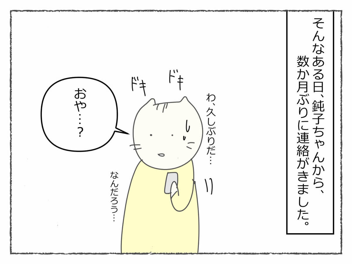 今回は「友情が壊れる編」。鈍子の態度に失望してしまった、作者と同僚の優子。気を遣って丁寧に言ったつもりだったのに、鈍子から衝撃の一言が……。
