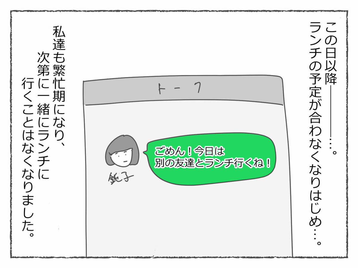 そのまま疎遠になってよかった……とホッとしたのも束の間。ランチのお誘いがまたくるとは……どこまで自分勝手なんだという感じですね。