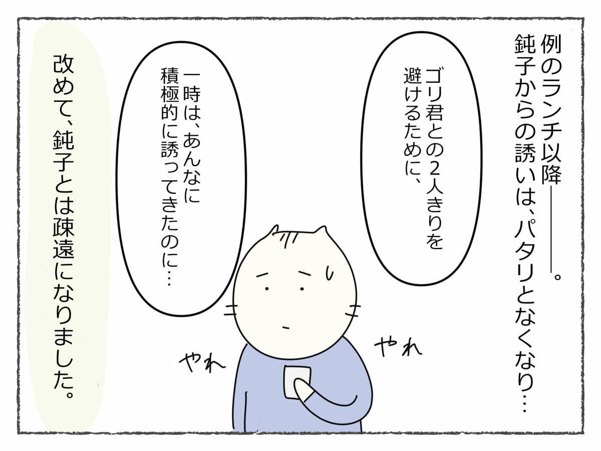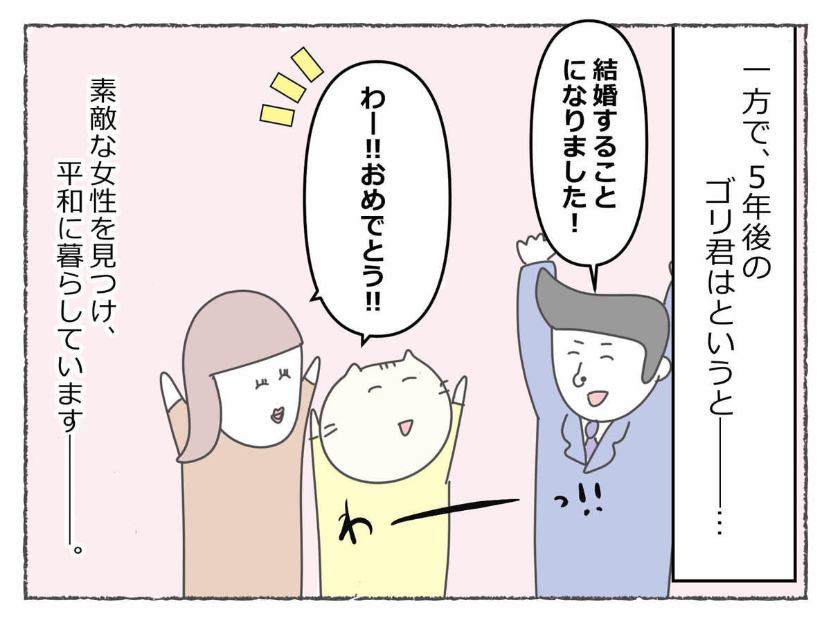 あれだけ振り回しておきながらまた利用しようとするなんて、本当に鈍子の自分勝手さには呆れてしまいますよね。一方で同期のゴリ君は、ステキな方と結婚できたようで、漫画担当もうれしい気持ちになりました♪