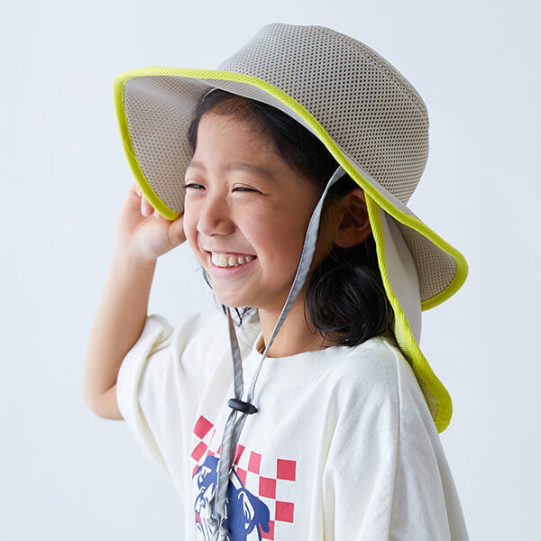 耳まで隠れる長め設計もポイントです。お子さまを見つけやすいカラーリングにもこだわりが。
