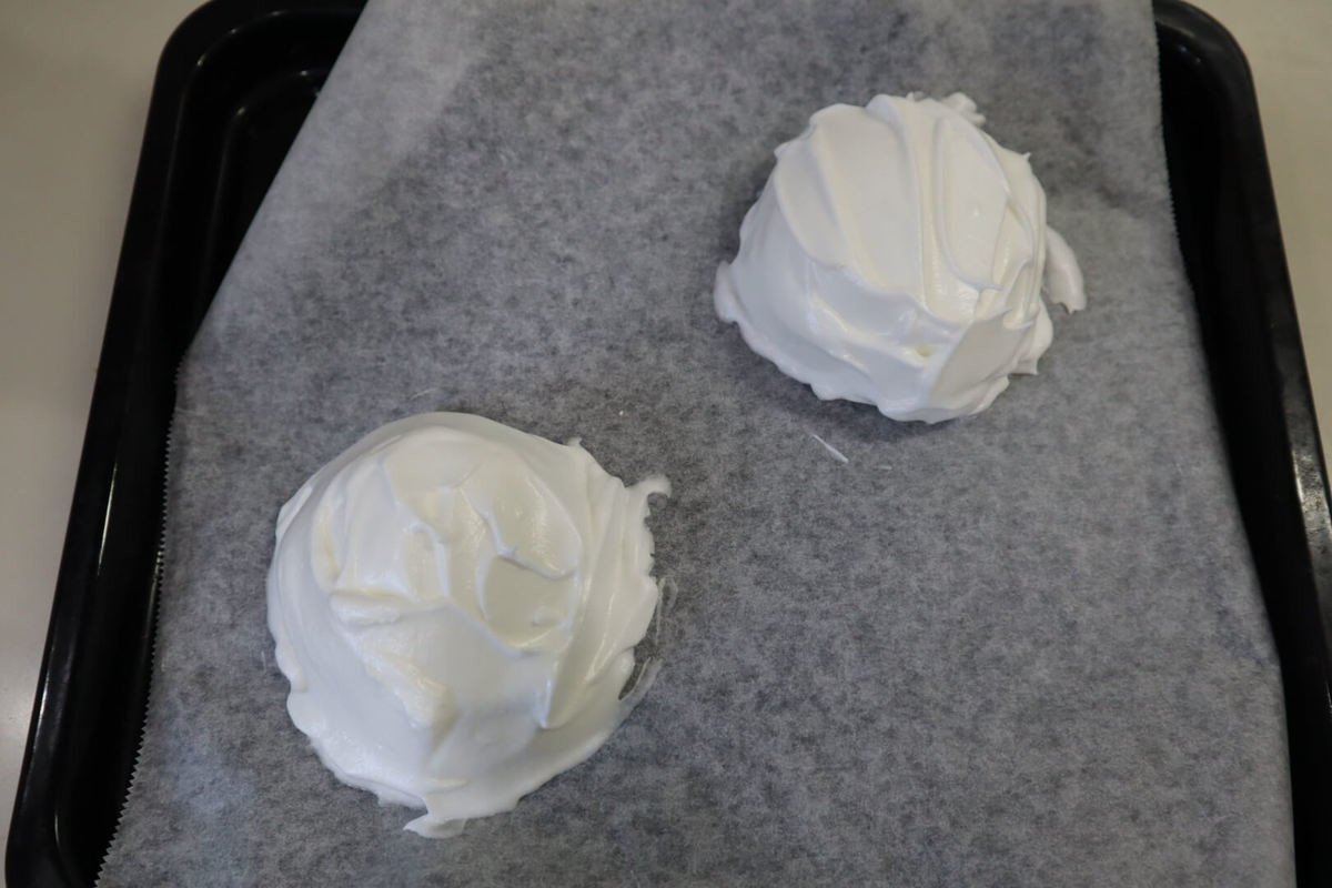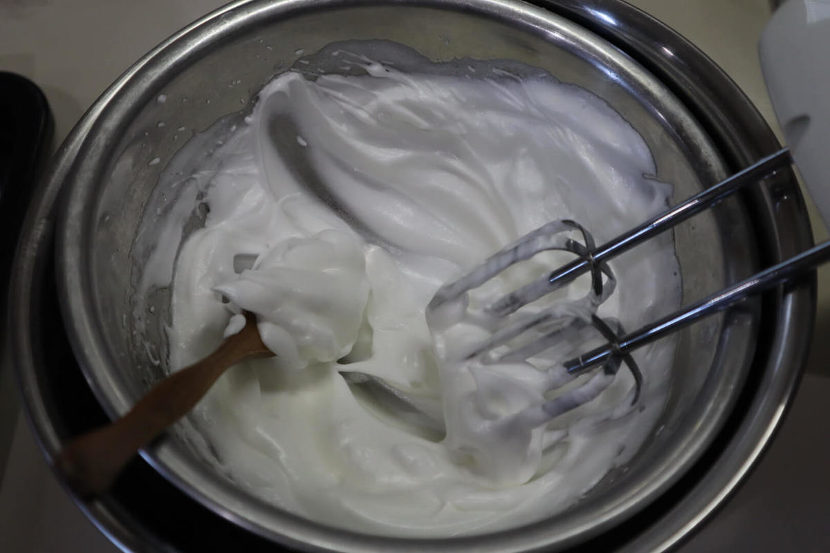 卵白でメレンゲを作る時に、砂糖を入れてから混ぜると泡立ちにくいので、先に泡立ててから砂糖を加えるのがオススメです。