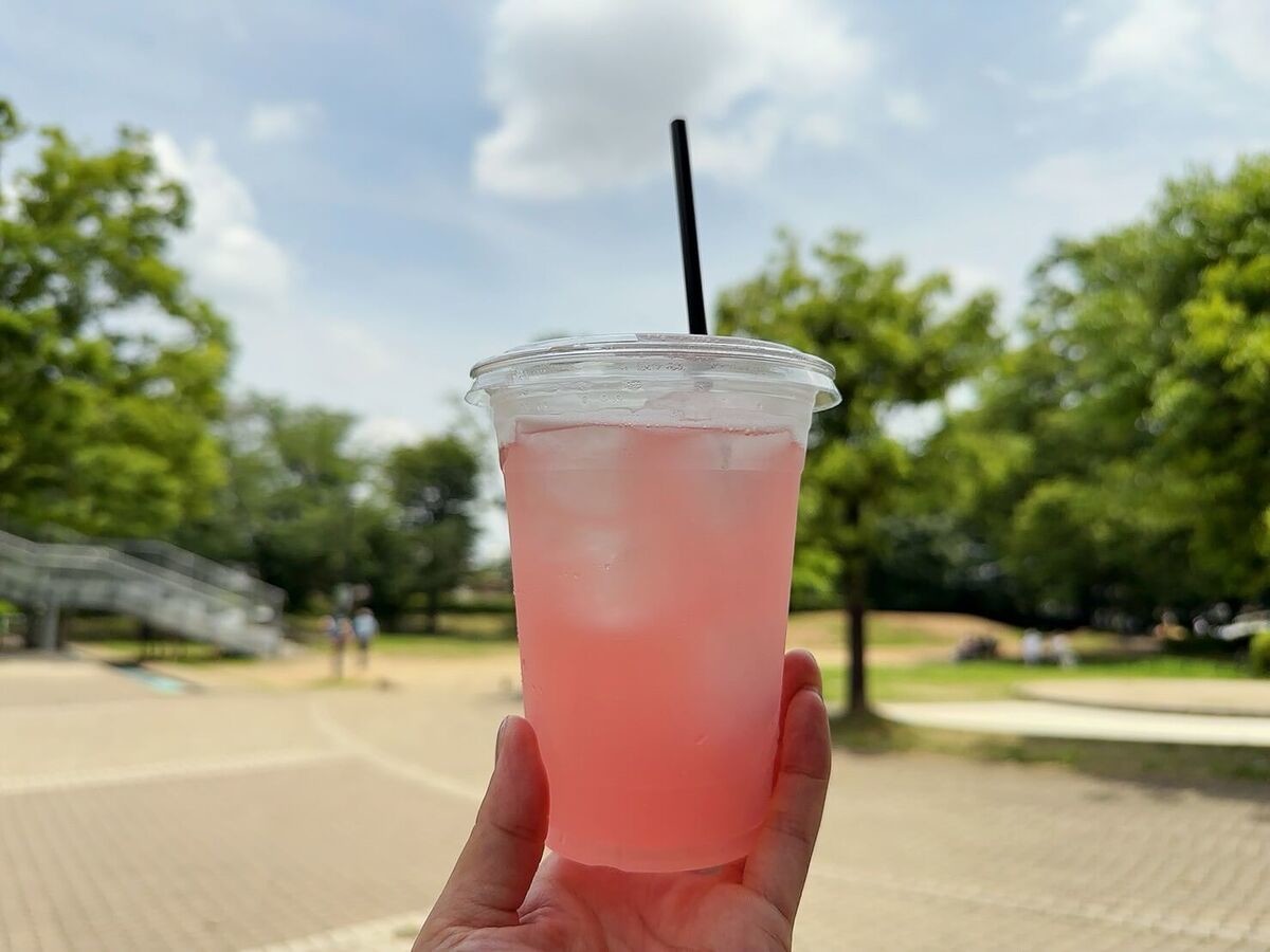 人気メニューの「バラのコラーゲンソーダ」は、ほんのり甘くて爽やかな飲み心地。バラ園の風景とマッチする華やかなビジュアルで、気分もアップ!