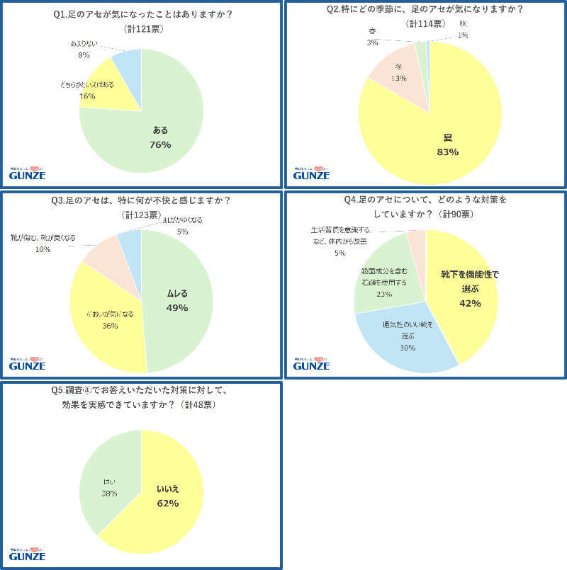 グンゼの公式Xを使用し、足のアセについてのアンケート調査が行われました。
