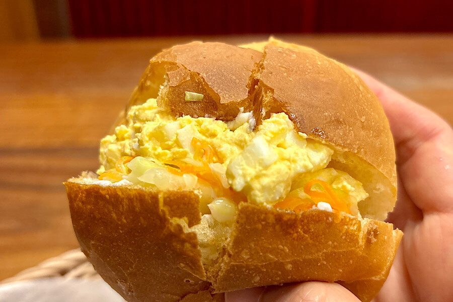 一緒に注文した玉子ペーストと一緒にパンに挟むと具材の多いサンドイッチとして食べることができます。