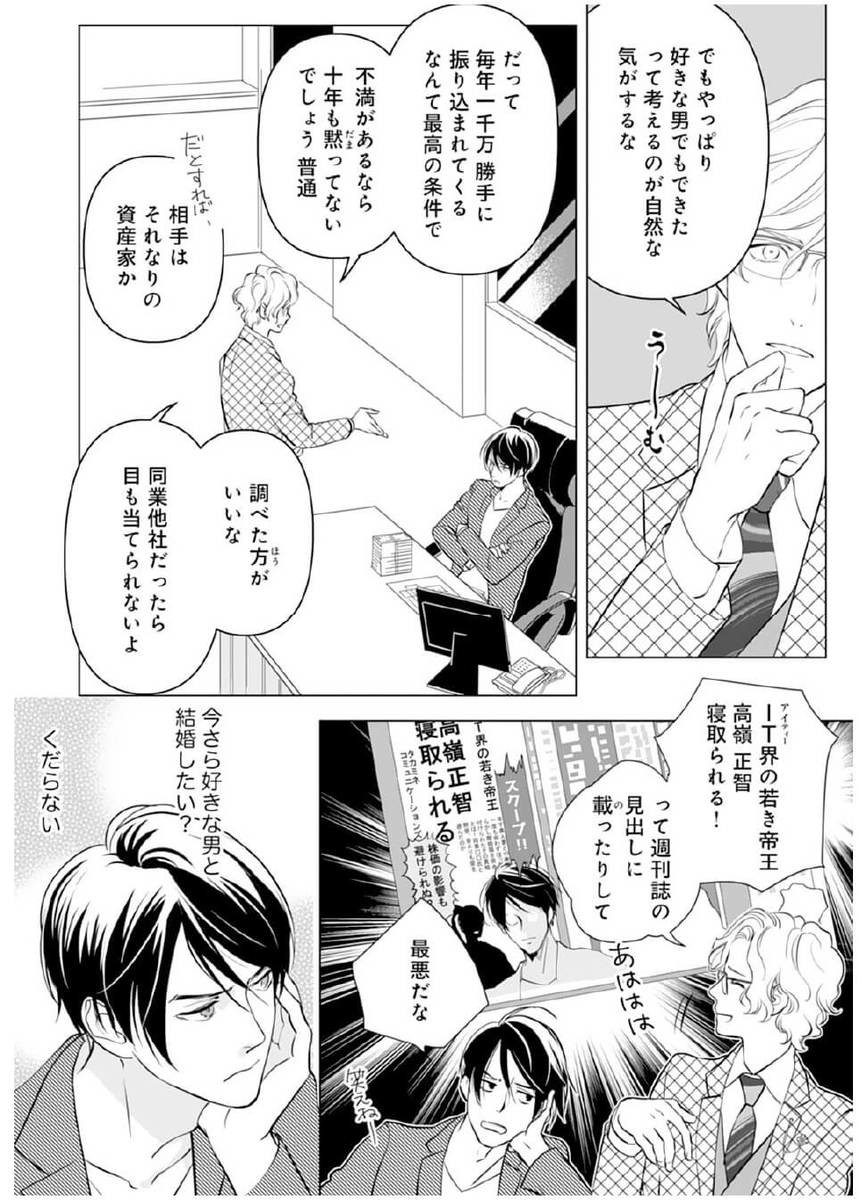 その後、互いの顔も見ず話もしないまま10年の月日が経ったある日、ついに莉央は上京し、初対面の彼に”離婚”を申し出る。しかし高嶺は、妻の美しい姿に驚きつつも「離婚する気はない」と揺らがない。