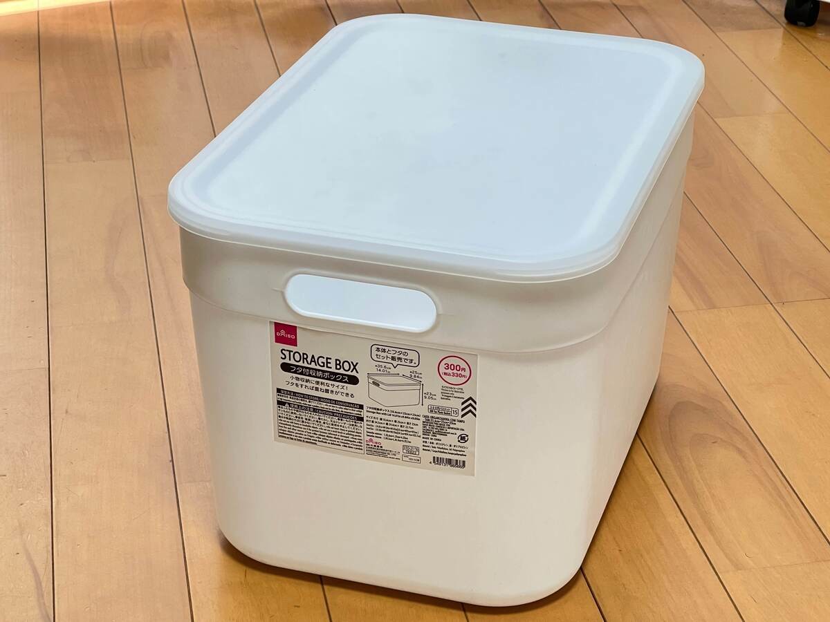 慣れないうちは、“とりあえずボックス”を作ってみるのもいいですよ。ダイソーの「フタ付収納ボックス(330円 税込)」のように、カラーボックス1段程度の大きさで、フタが付いているものがおすすめです。