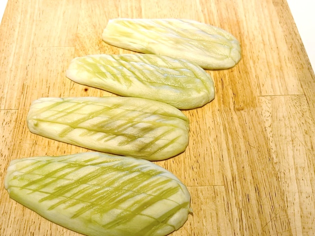 作り方③なすを切って盛り付ける