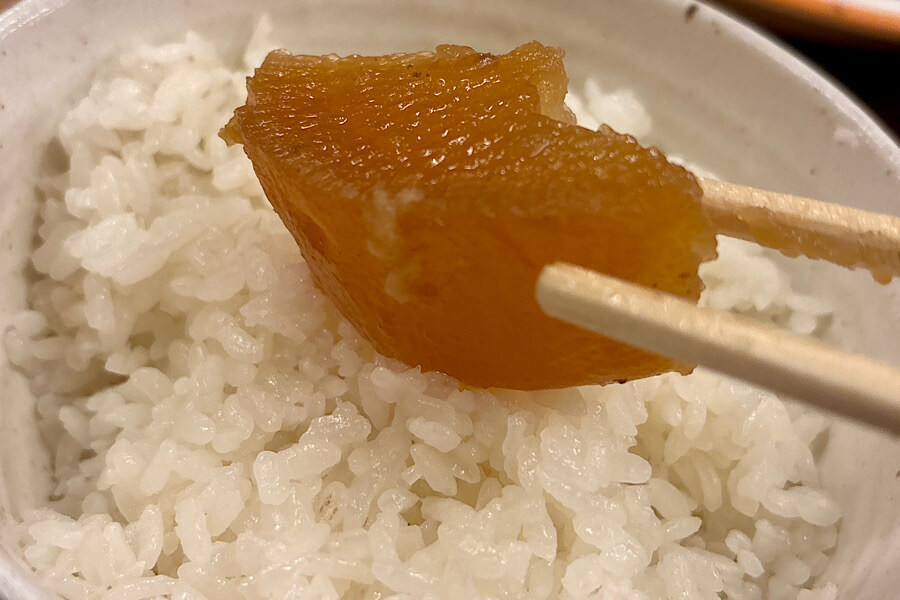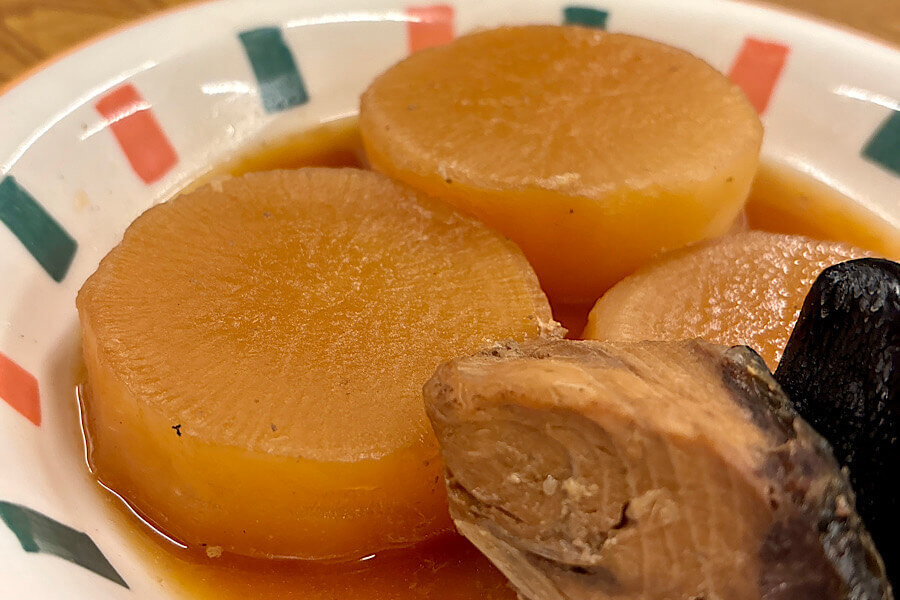 大根を口の中に入れると甘い煮汁がじゅわ〜っと染みだしてきました。