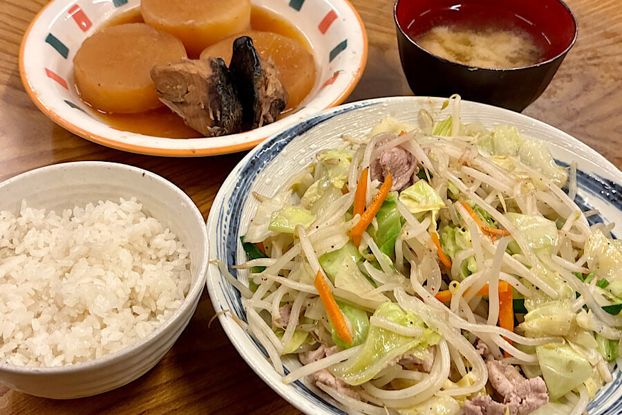 五郎さんじゃなくてもメニューの多さにいろいろ迷ってしまいましたが、肉野菜イタメ定食990円と大根煮400円を注文しました。