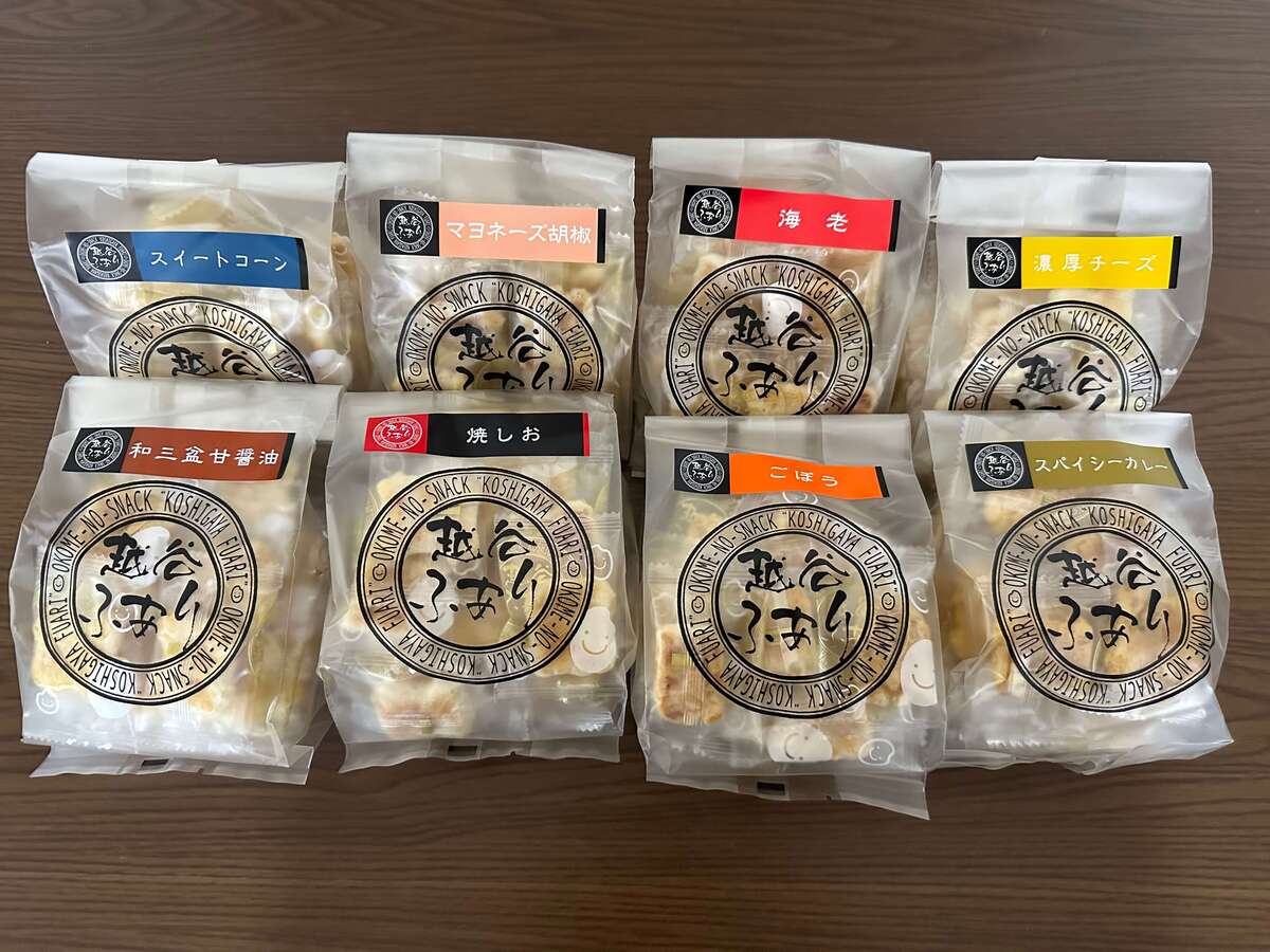 埼玉県越谷市限定で販売されている人気の米菓「越谷ふあり」。国産もち米とうるち米を独自配合し、鉄板焼きで仕上げた軽くサクサクした食感が特徴で、「和三盆甘醤油」「濃厚チーズ」「スイートコーン」「ごぼう」など、様々なフレーバーも魅力です。