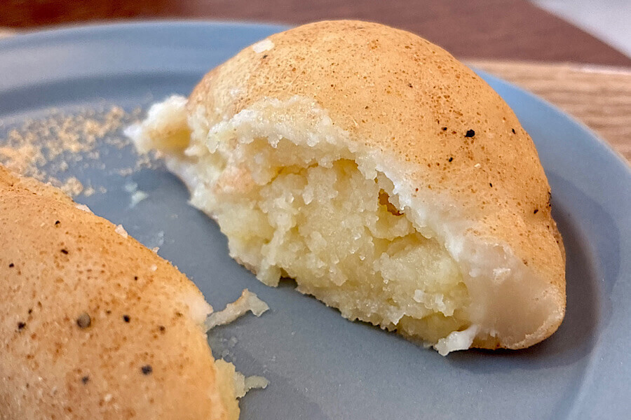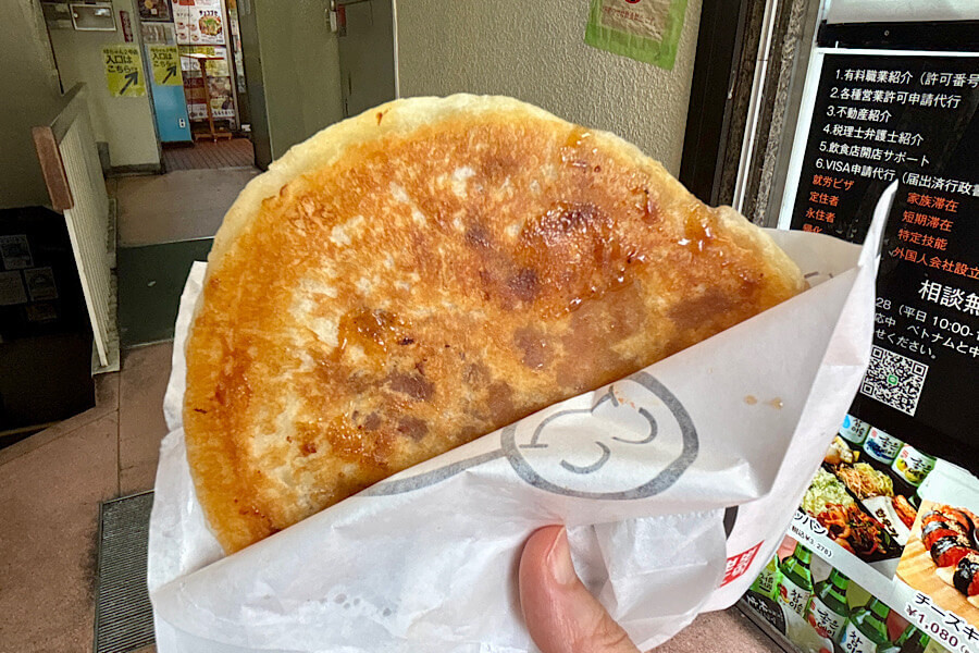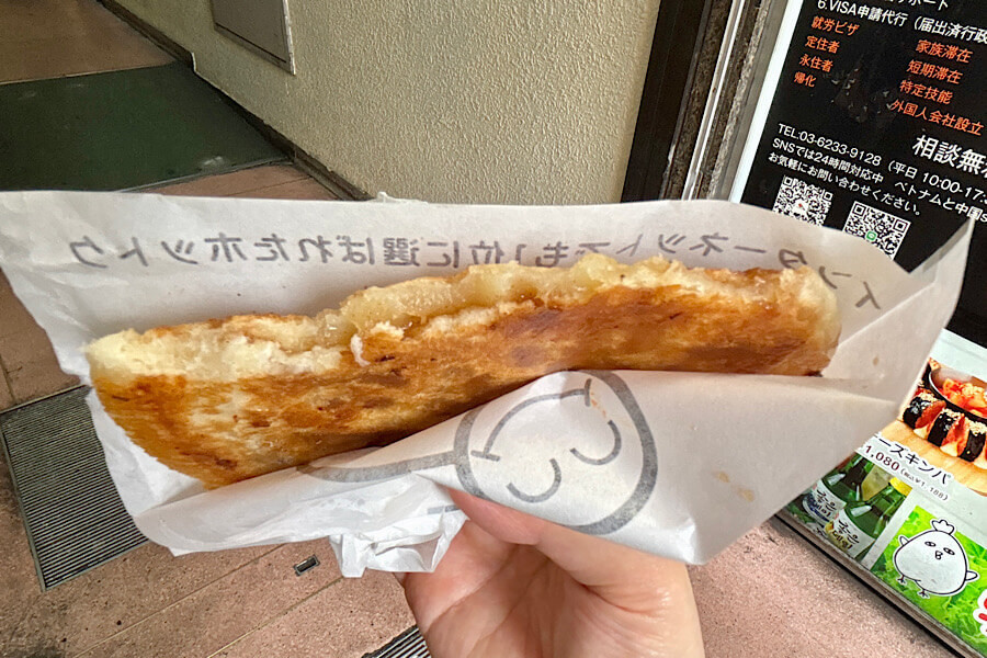 モチモチした少し甘めの生地で、焼き目のあるところはちょっとサクサクしておいしいです。具のはちみつとチーズがあまじょっぱい感じで予想を裏切らない味。