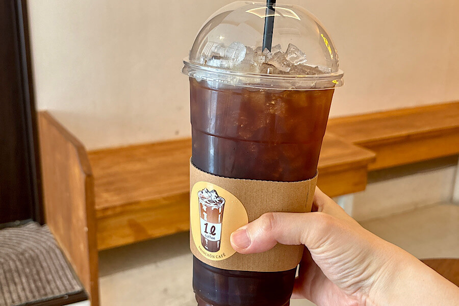 シンチョンカフェには、カムジャパンと並んで名物になりそうなドリンクが置いてあり、それが「1Lアイスアメリカーノ」(600円)です。