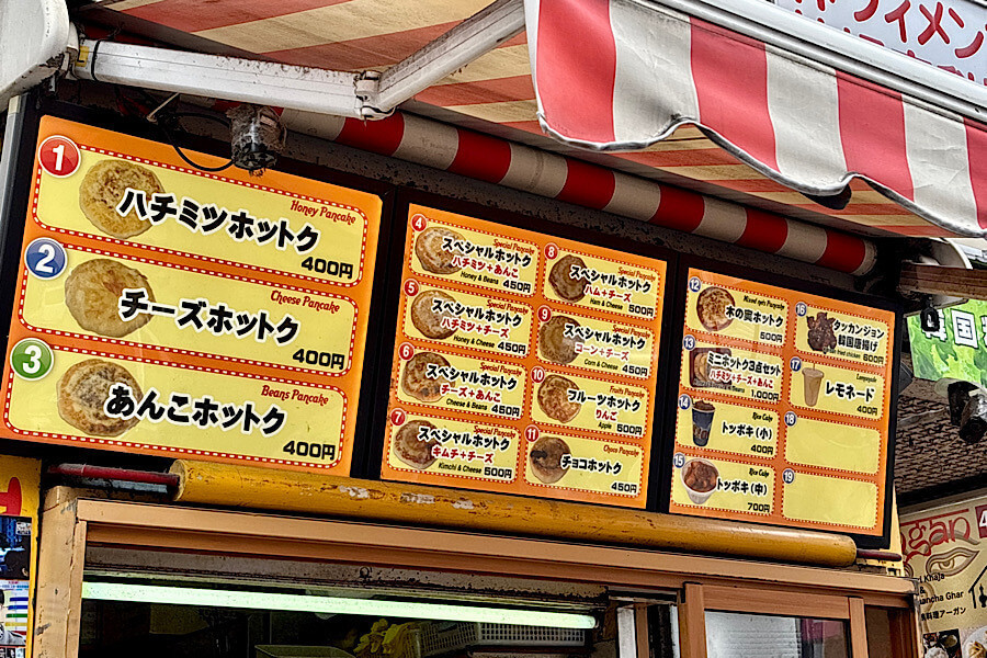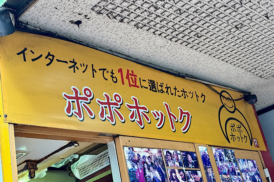 新大久保駅前の通りにも何軒かホットクの屋台があるのですが、「POPOホットク」というお店が特に人気です。自家製のレシピで生地となる粉をブレンドし、注文してから焼くので、ほかほかで美味しいのが人気の理由です。