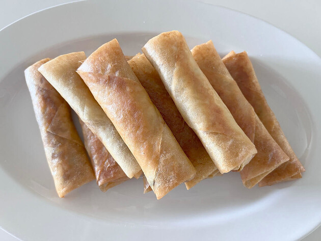 150度の揚げ油に春巻きを入れて弱火で6~7分揚げ、強火にしてきつね色になったら取り出し、器に盛りつけて完成です!