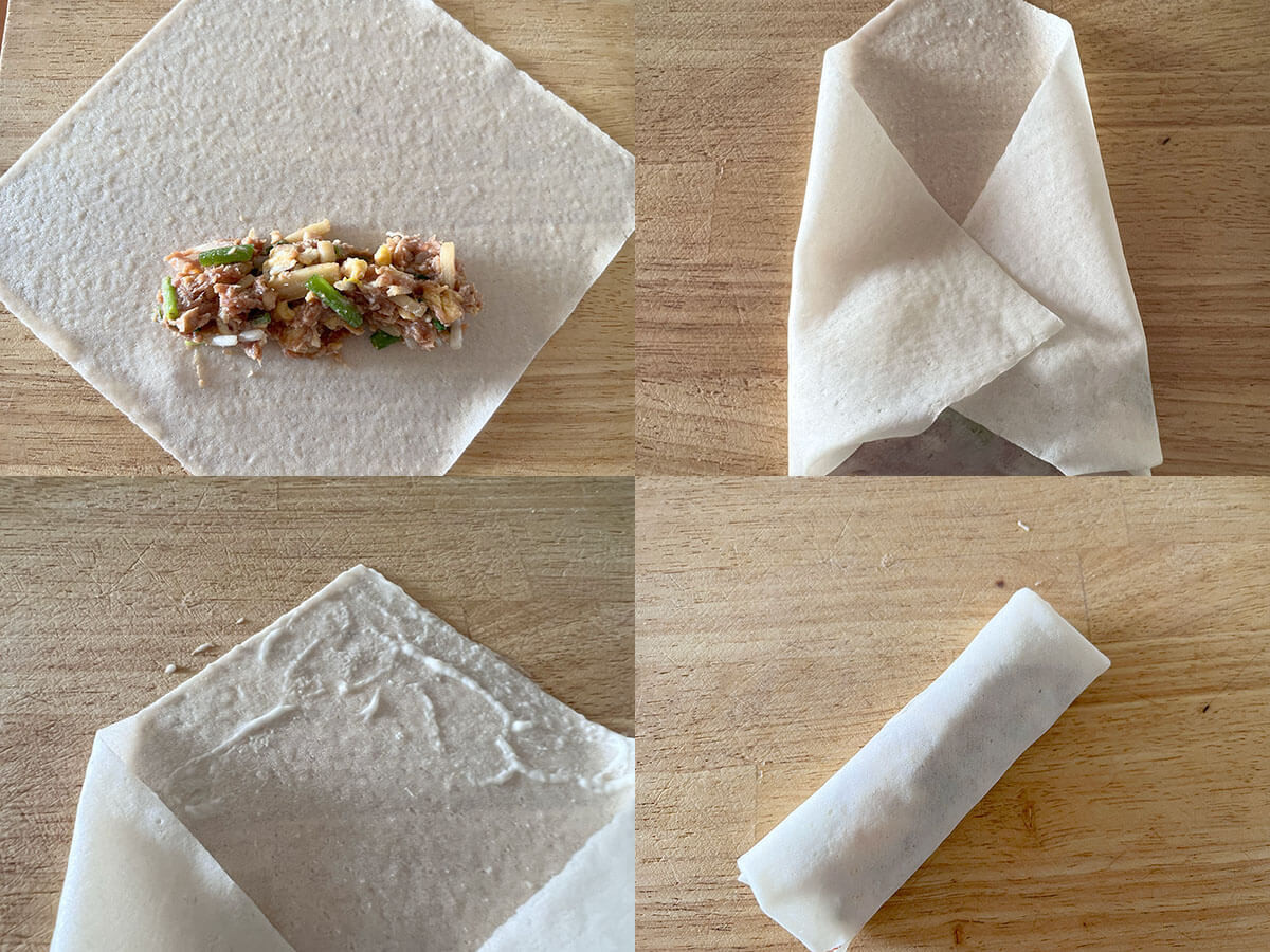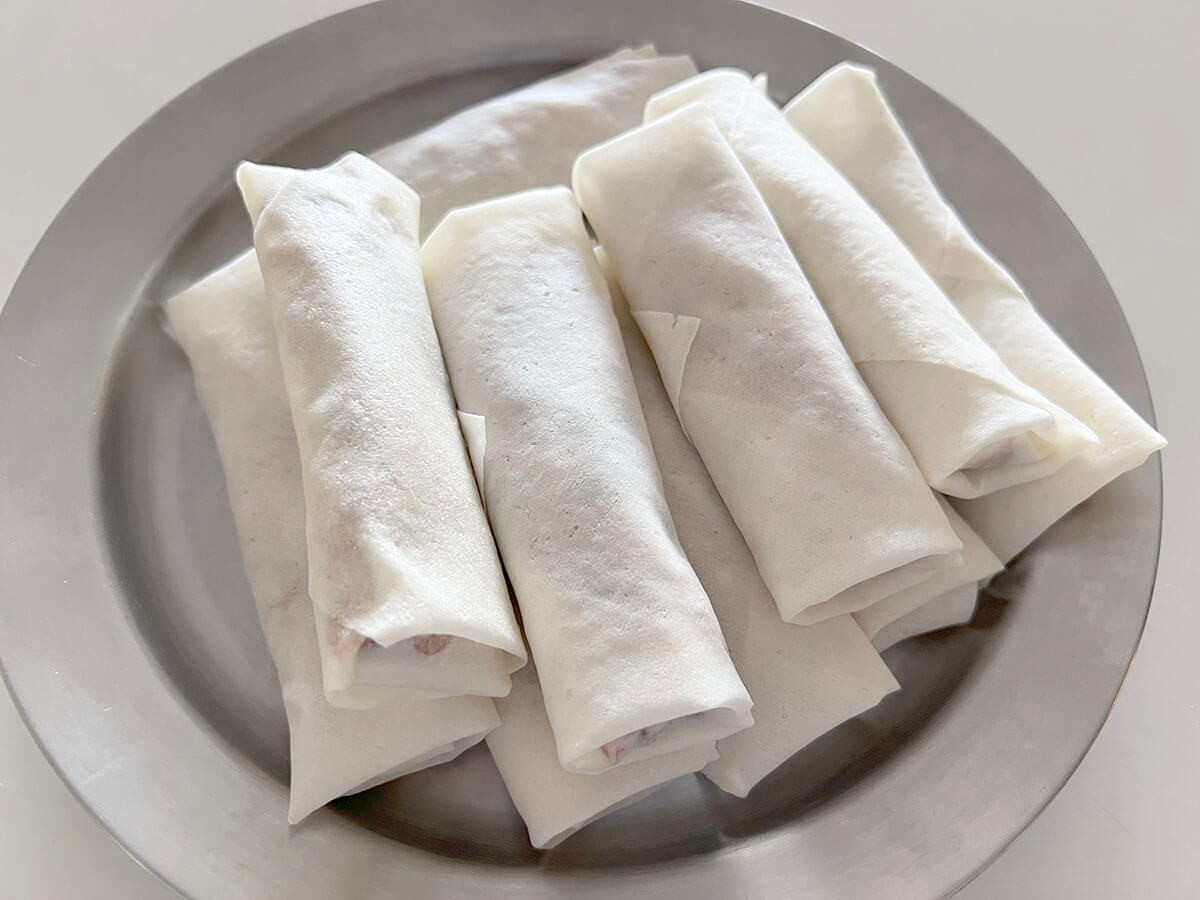 基本的には、季節の野菜と肉か魚介類を使うと良いと聞きますが、これはいつでも作れるベーシックな春巻きかと思います。作った様子をレポートしてまいりましょう。