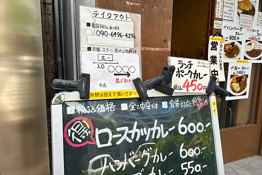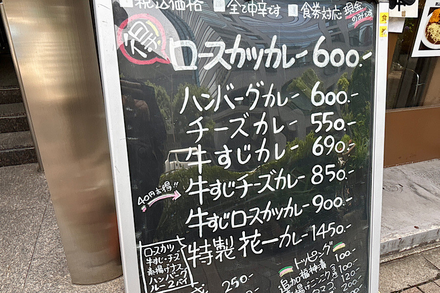 そんな中神保町駅と水道橋駅の間に行列ができているカレー屋さんがあり、ちょっと様子を見に行くと、表の看板メニューの値段設定にびっくり。ランチカレー450円とあります。