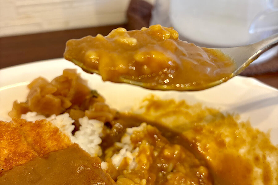 カレールーは最初に野菜や出汁の甘さを感じます。そのあとにピリッと辛くなります。欧風カレーとお家のカレーを混ぜて、上級レベルに美味しくしたようなカレーです。
