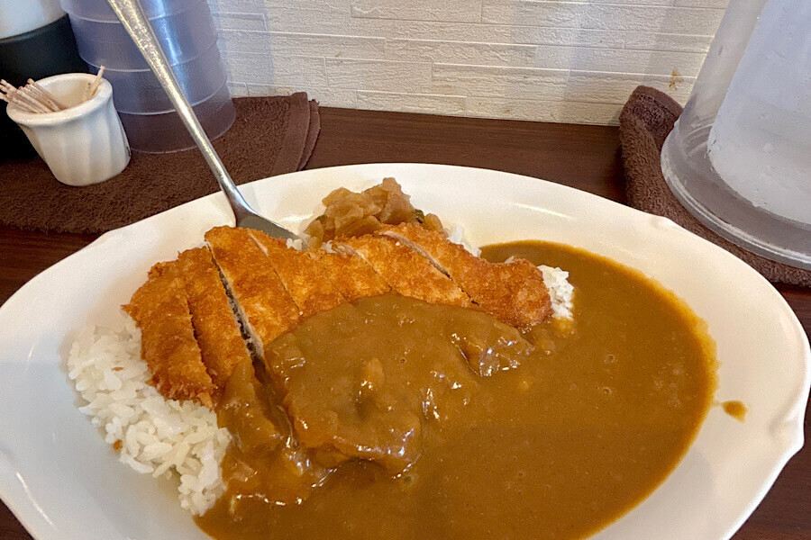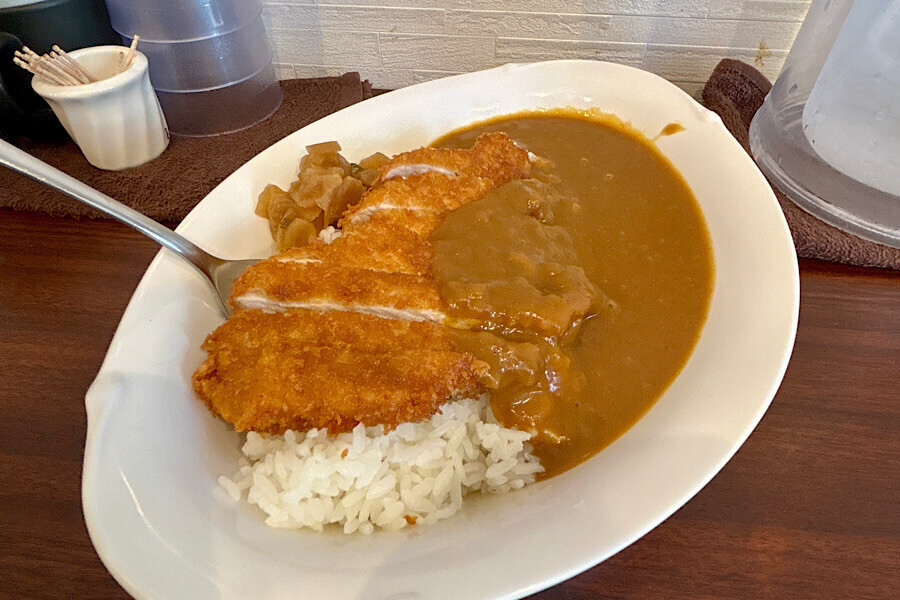 運ばれてきたカツカレーのボリュームにまず目をひかれます。