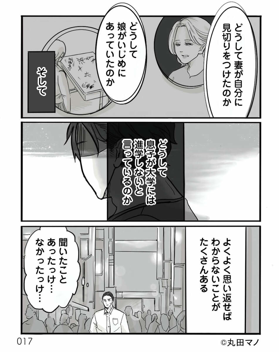 【漫画】娘がいじめで悩んでいた時の記憶さえ曖昧…。家族をないがしろにし続けた父親に、娘から強烈なひと言!【離婚リセット 妻から別れを切り出された夫②】