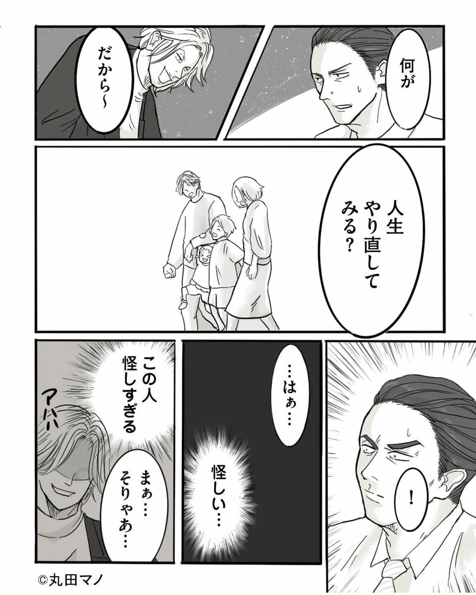 【漫画】「人生やり直してみる?」怪しい男からの提案に困惑…。離婚回避のウルトラ級手段とは!?【離婚リセット 妻から別れを切り出された夫⑤】