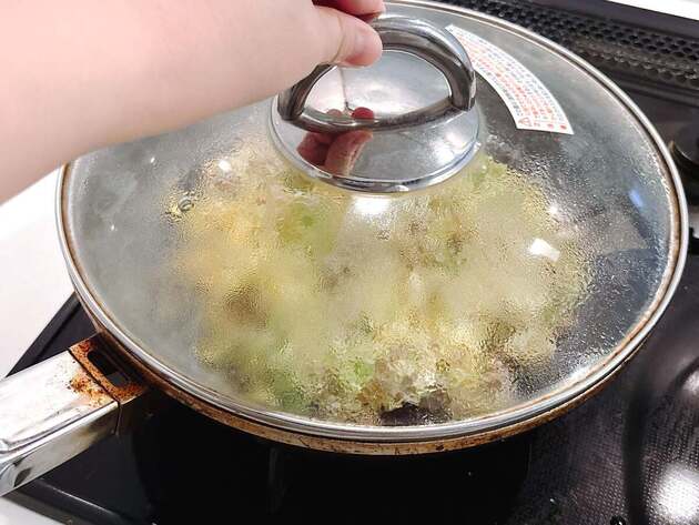 ディルを散らしたらふたをして、弱火で3分加熱します。