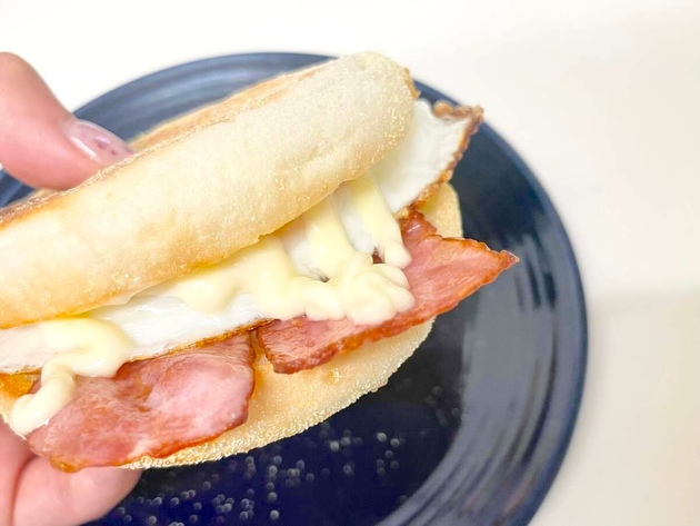 イングリッシュマフィンを焼いてる間にベーコンと卵を焼いていたので、時短できました。