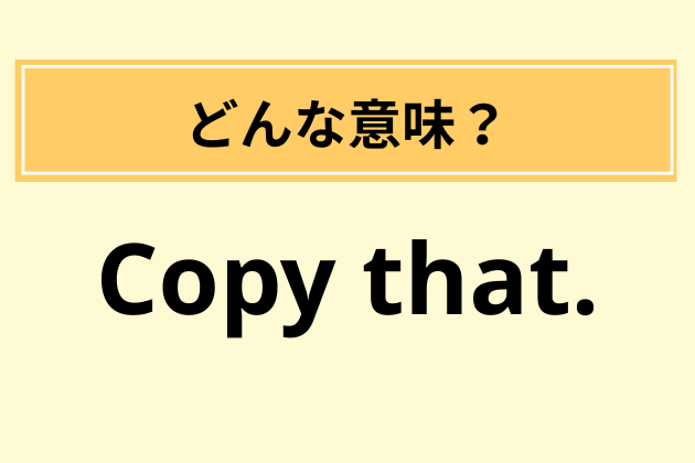今回は“Copy that.”について。どんな意味かわかりますか?