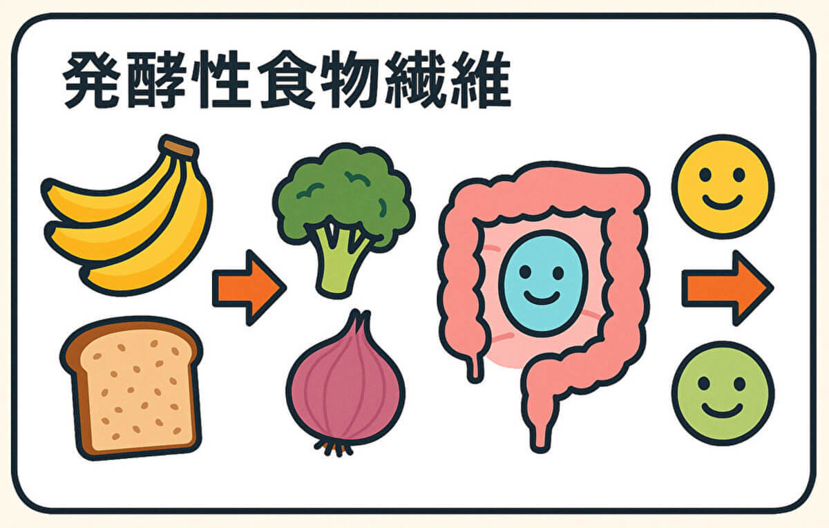 発酵性食物繊維とは、腸の中で善玉菌のエサになって発酵され、腸内環境を整えてくれる食物繊維のことです。