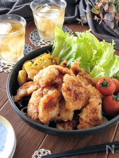 ゆぅゅぅさん考案の「簡単節約☆鶏むね肉の揚げない塩唐揚げ。」。
