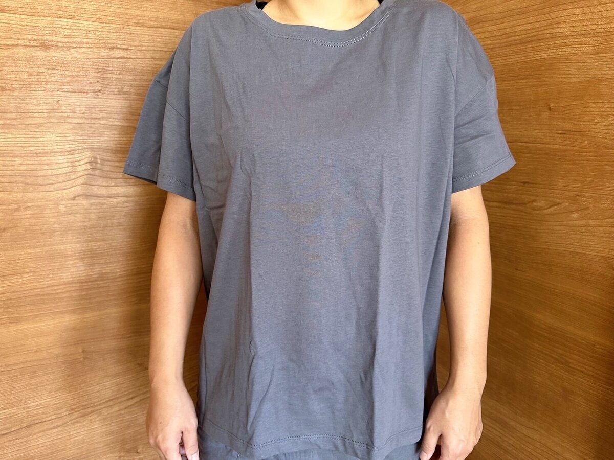 いつも着ているMサイズを選んだところ、少し余裕がある大きさでゆったりでした。動きやすくリラックスできるサイズ感でありがたいです。