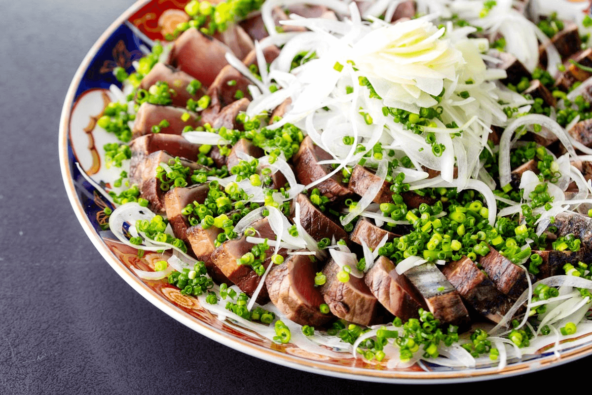 四万十市中村で食べられている「中村の塩タタキ」もオススメです!高知県の“美味いもの”といえば全国的にも有名で、一番に「カツオのタタキ」が浮かぶ人は多いのではないでしょうか。塩やタレを振ってたたくのは高知県独特の食文化といわれます。